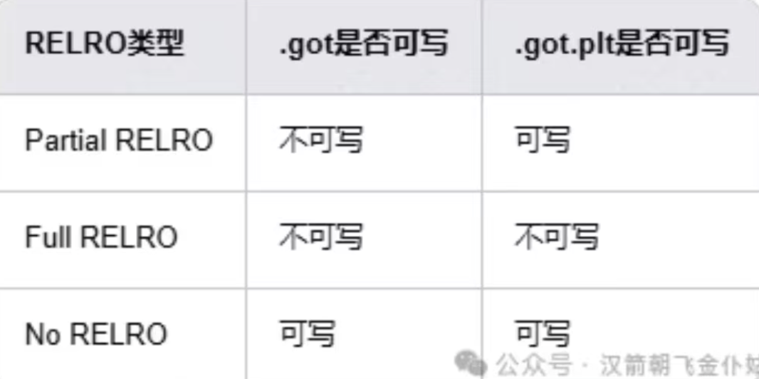 对于.got和.got.plt是否可写可以直接参照这个表搜索