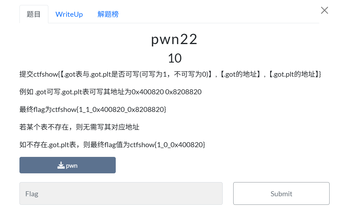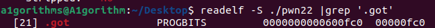 都可以很快啊查出这些内容,因此pwn20和pwn21都应该这样子做,之前的懒得改了,我们直接看pwn22