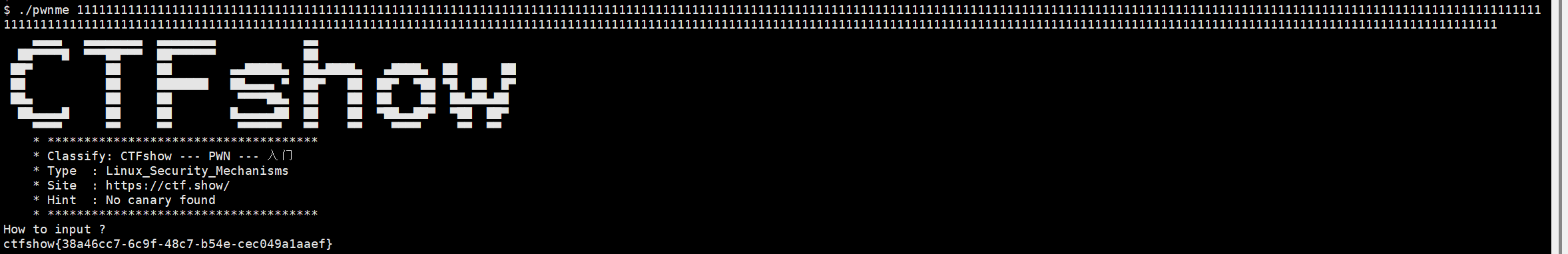 这边给提示了,没有进行堆栈保护,那我们制造栈溢出看看