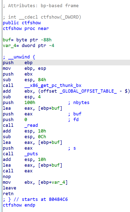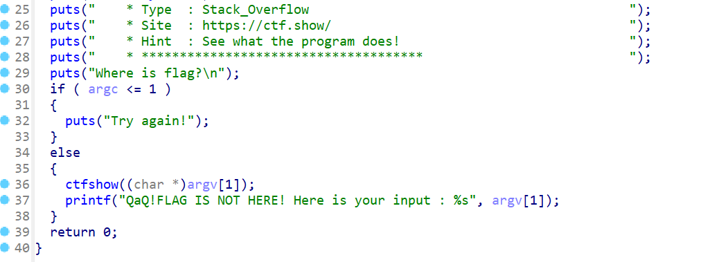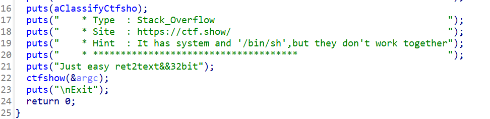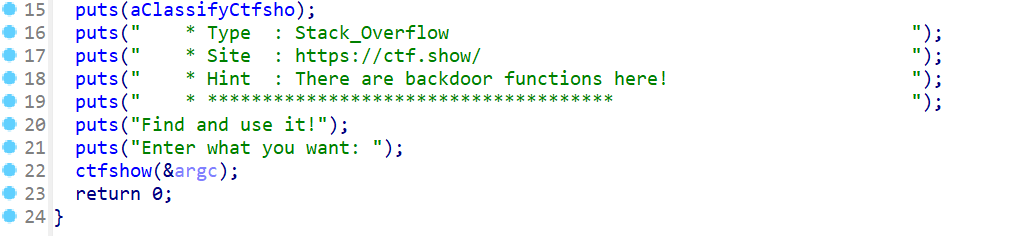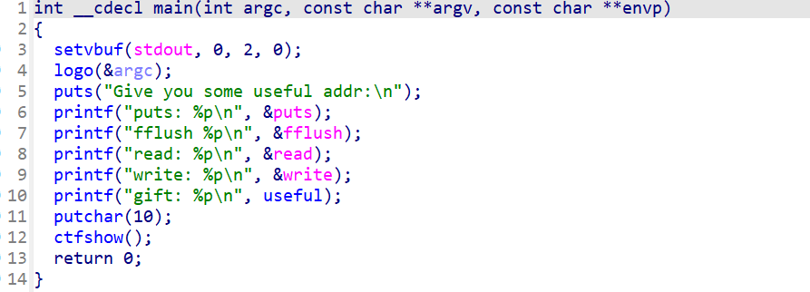 这边可以看一下main函数,漏洞点依然在ctfshow里