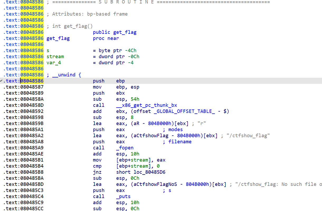 明显是这个get_flag的函数,我们一会儿传到这个函数地址来即可