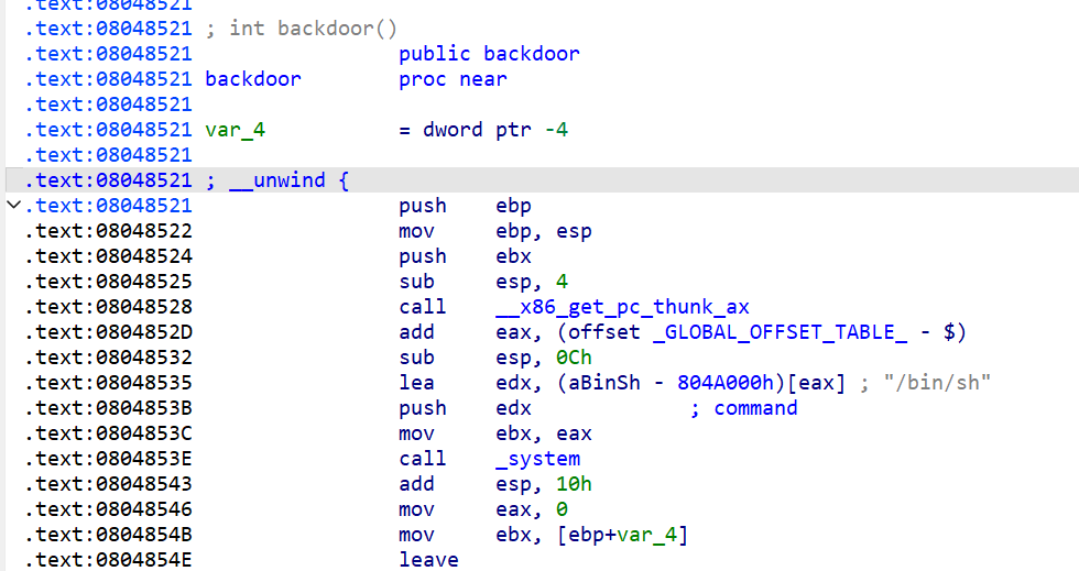 我们根据这个,buf栈溢出后直接跟上system的地址即可