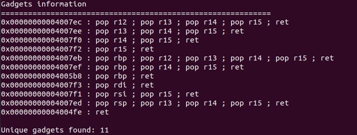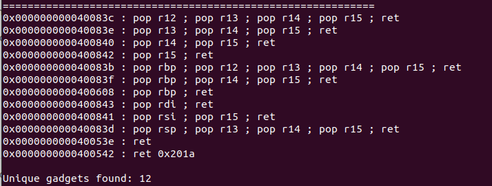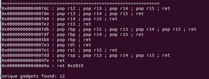 ROPgadget –binary “pwn44” –only “pop|ret”