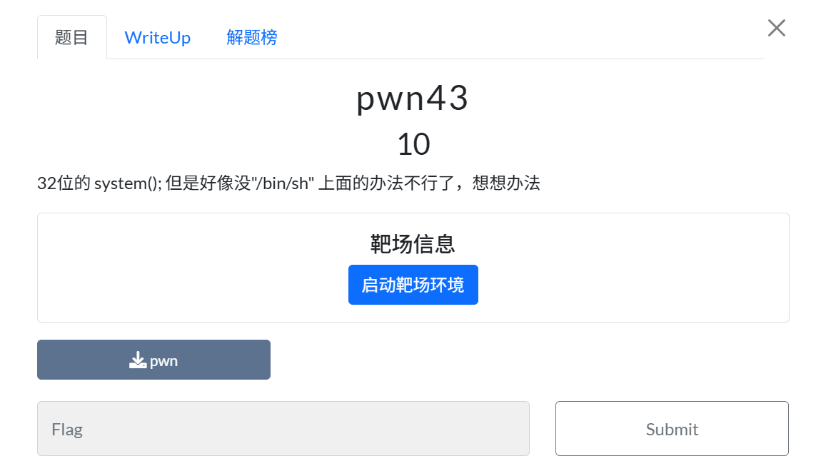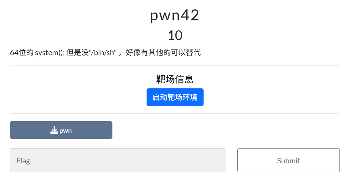 这题给了/bin/sh,但是我懒得用了,直接用基地址不也一样吗