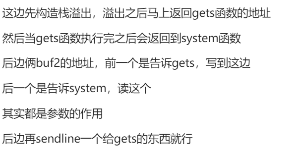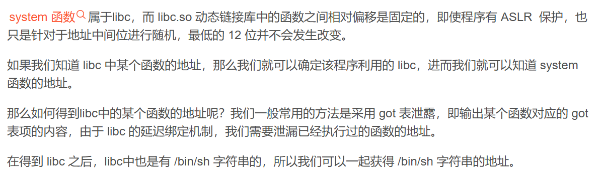 从而成功得到这两个东西,然后我们再传参一次,把/bin/sh内容传参到这个system函数中去