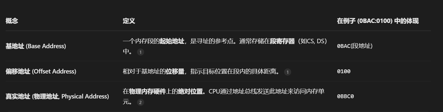 寻址一般是基地址往左移四位然后加上偏移地址(偏移地址一般就四位)