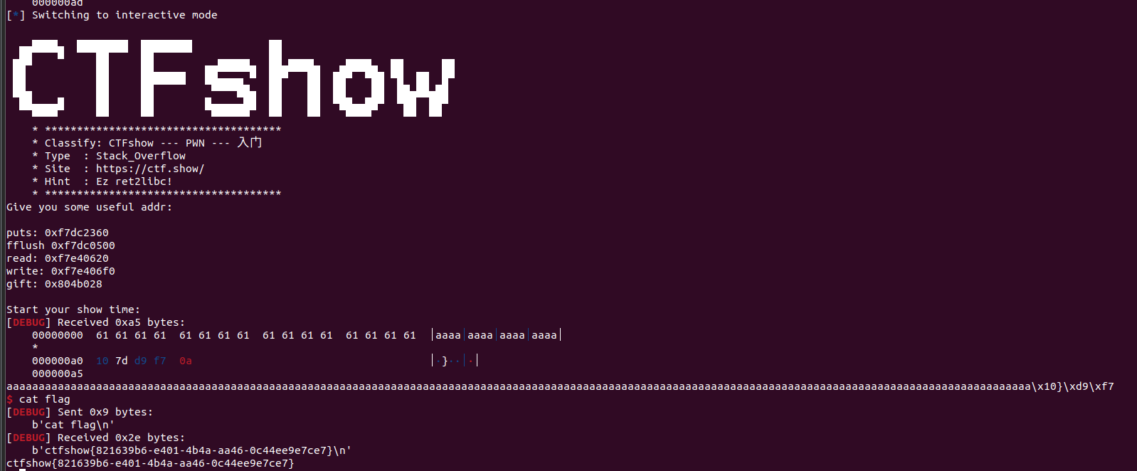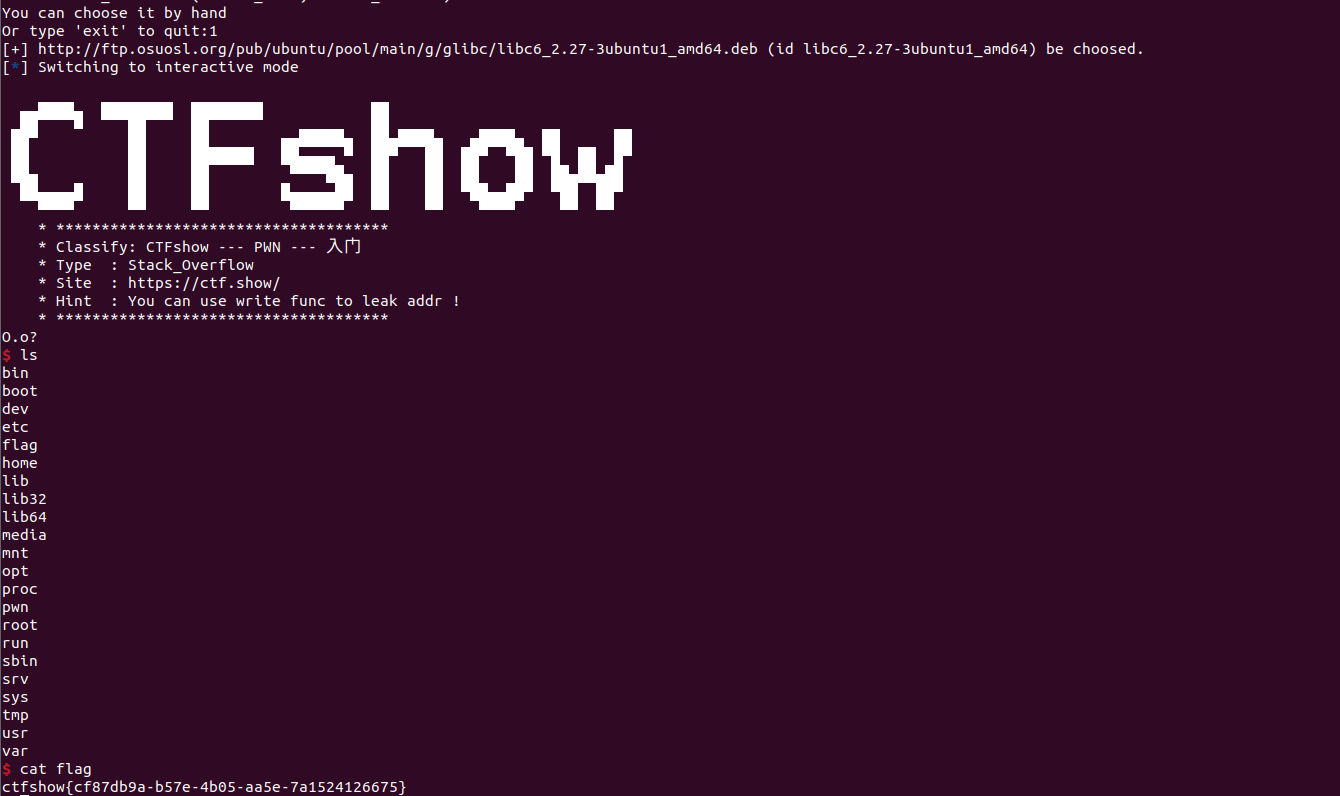 截断之后我们得到了puts函数的真实地址,接下来就能利用这个来得到libc库了