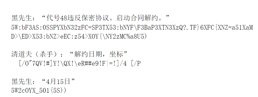 注意到word里有这样一段对话提到了内部代号,结合剧情,确实是贾韦码死了,所以他应该内部代号为48
