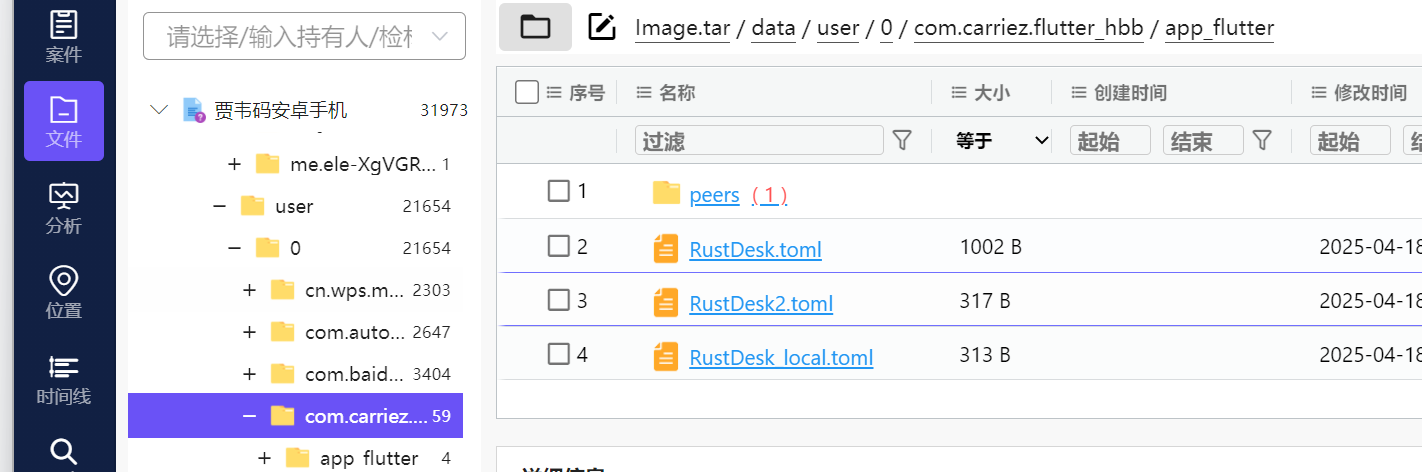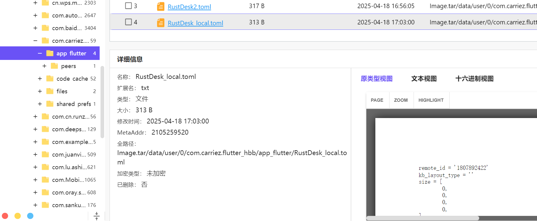 在对应包名文件中寻找可以找到这个rustdesk2.toml文件,可以看见里边一栏