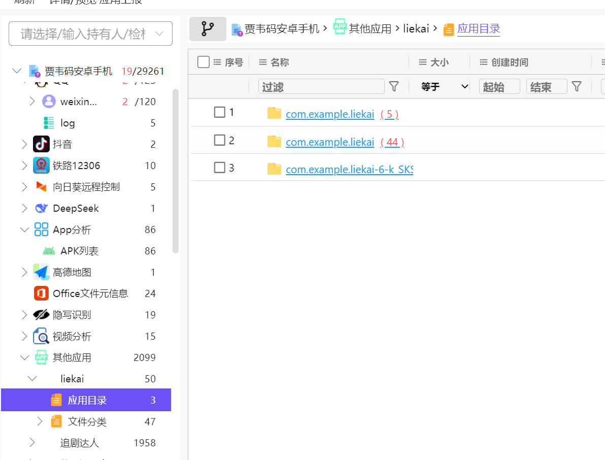 在其他应用处看见liekai这个软件可以看见很多音视频文件,猜测这个可能就是监听软件