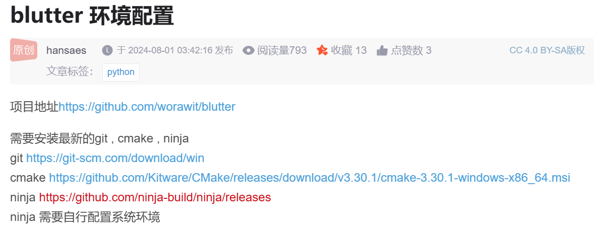 先配置我们blutter的环境,这篇csdn的代码我放在这边(耶)