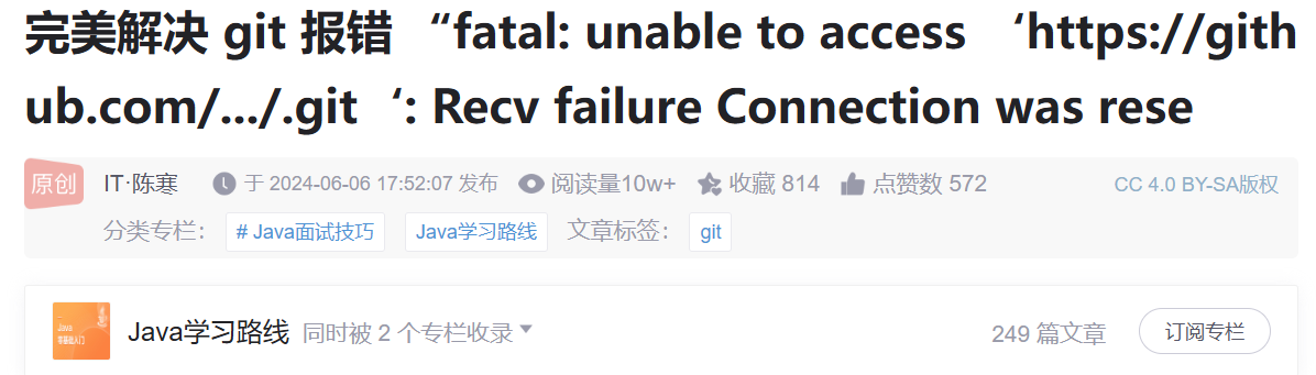 然后第一步就出问题了,在拉取代码的地方出问题了,放上解决链接
