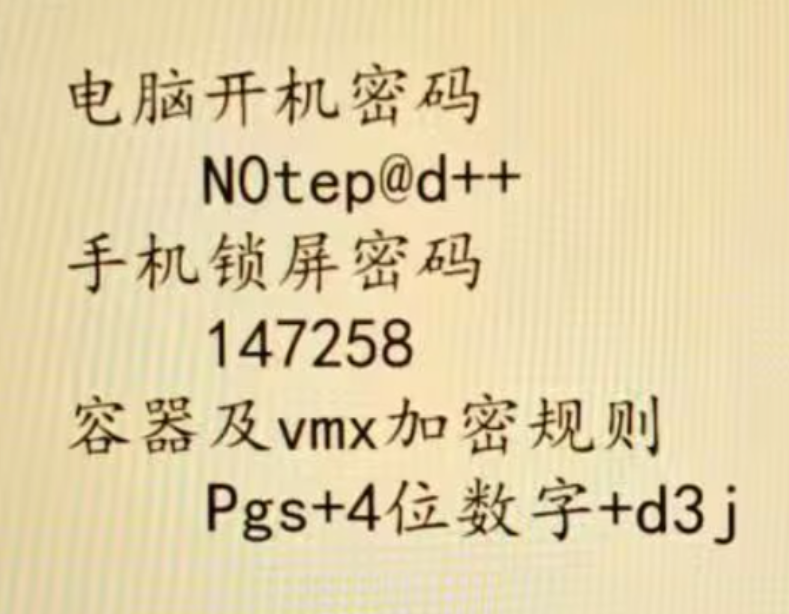 这个确实是没啥思路,在备忘录和各种会备注东西的里边先兜一圈,发现没有之后找到截屏,一张张扫,成功发现了mac密码