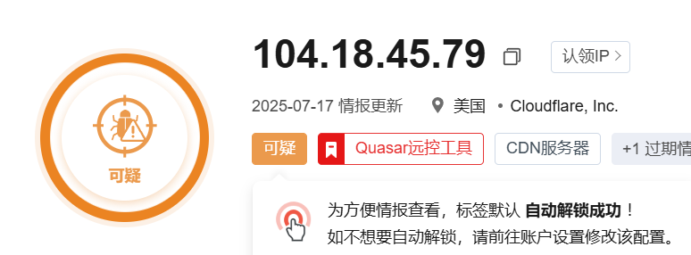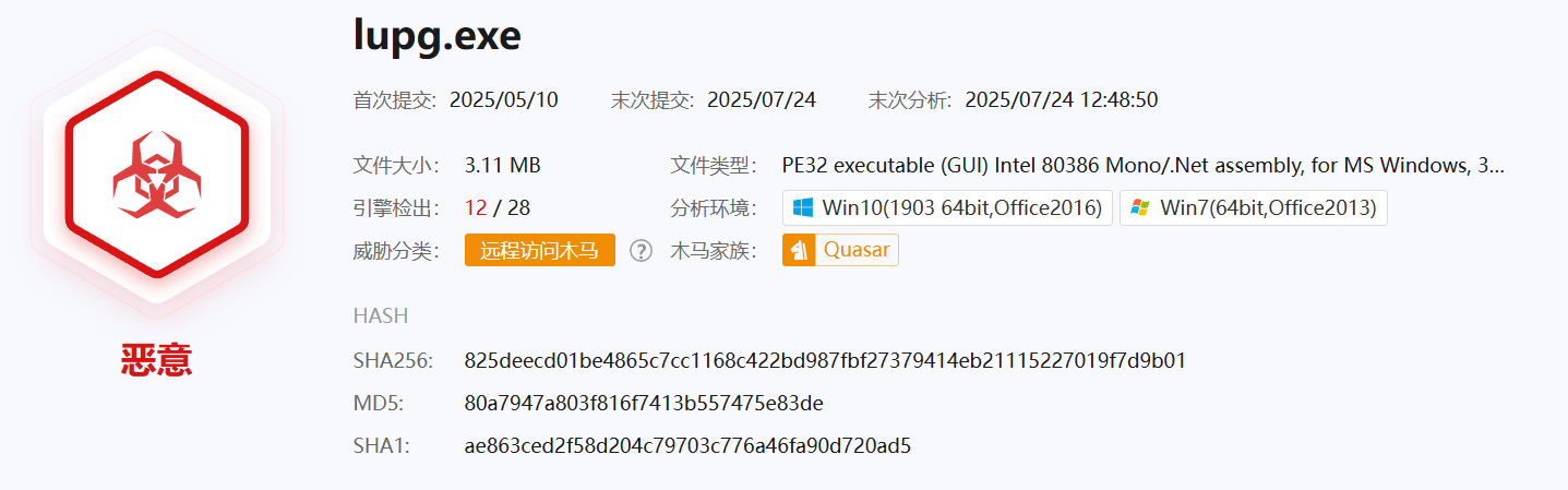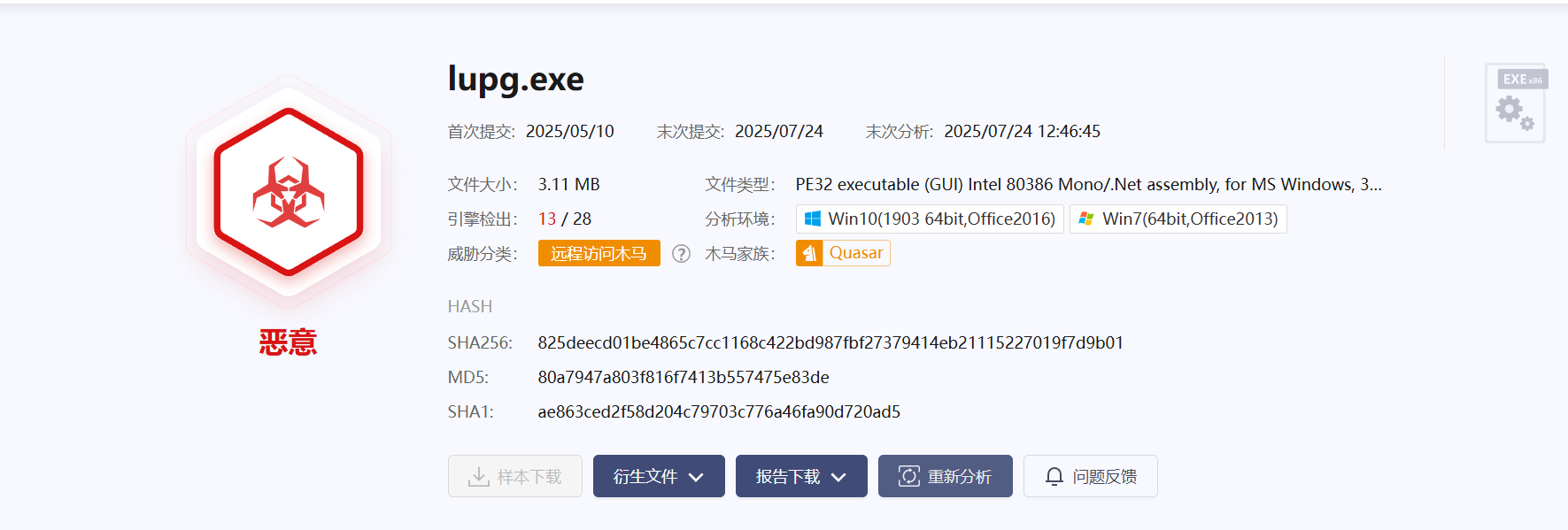 在云沙箱可以看到这个木马属于木马家族:Quasar