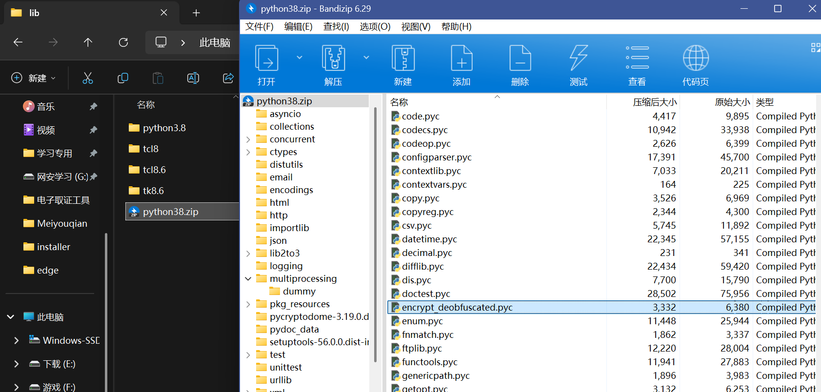 那么找到并导入这个模块即是关键,这个就是核心,而我们可以在python3.8.zip里找到它,但是是pyc格式
