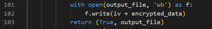 这里,iv是AES-CBC模式的初始化向量,encrypted_data是加密后的文件数据。因此,加密文件的头部应该包含iv,后面跟着加密后的数据
