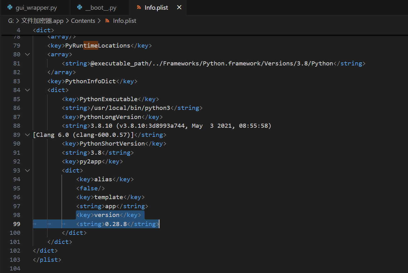 如图,在程序中可以找到一个info.plist打开即可看见下边有些version号