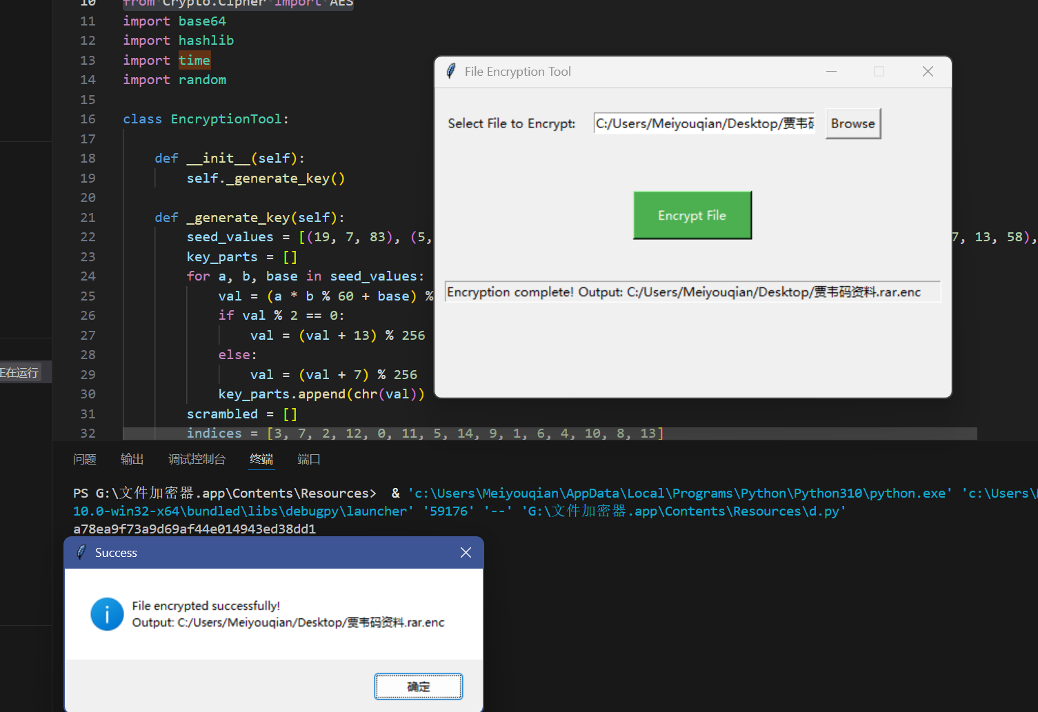 在EncryptionTool类的encrypt_file方法中,可以看到加密后的数据保存逻辑是