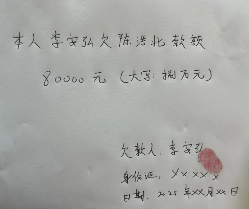 李某全名根据那张在欠条vc里的图片可以直接看到是