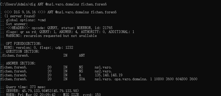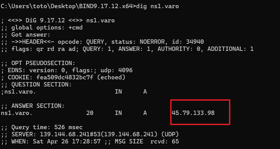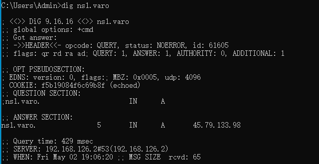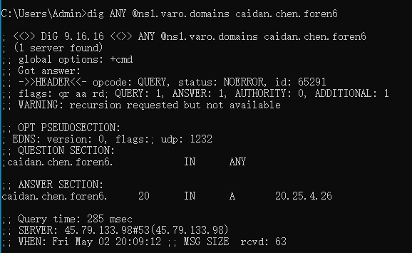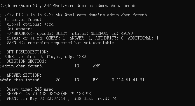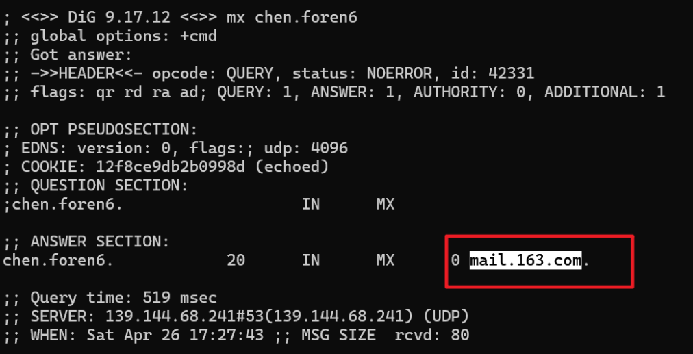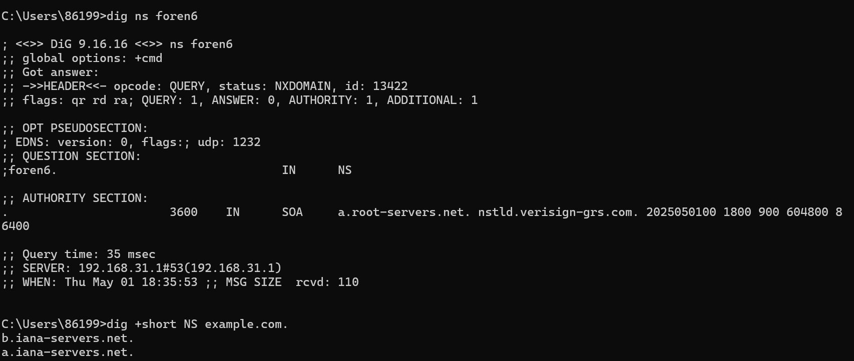 (我不知道为什么我dig不出**ANSWER SECTION**的部分)