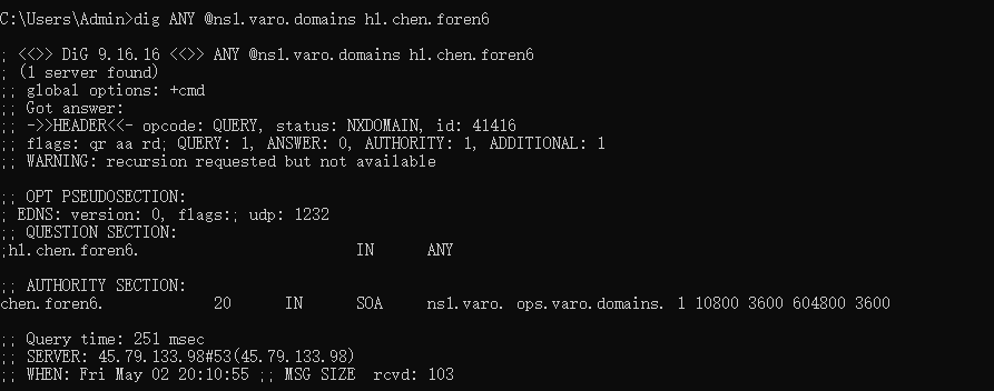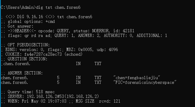陈某所用的顶级域名为.foren6,因此dig ns foren6