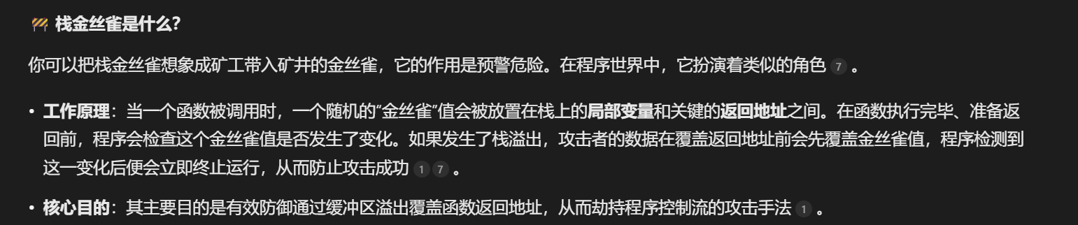 简单来说就是不能简单地进行栈溢出了,因为存在有检测环节,除非绕过,否则栈溢出无效