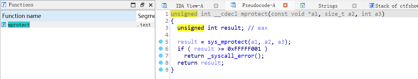 有了这个,我们就能平稳地接受这仨参数,然后执行mprotect的函数任务