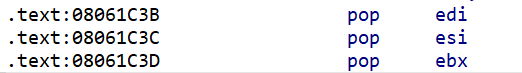 所以这三个很关键,我们在传参前要先返回这个的头地址,即0x08061C3B,辅助我们填参