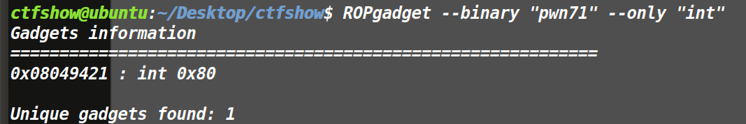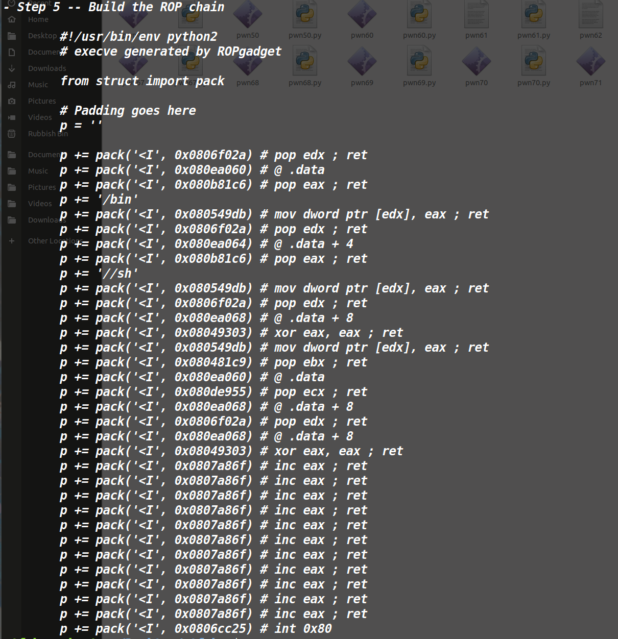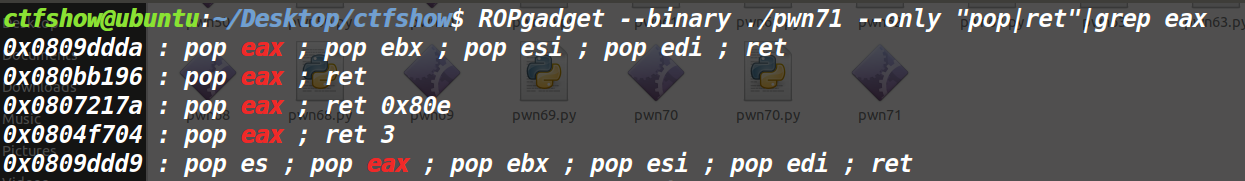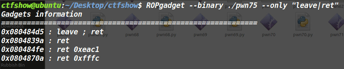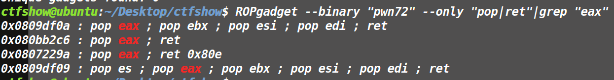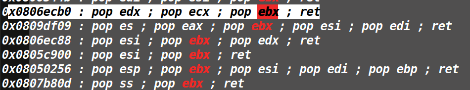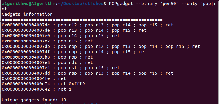 ROPgadget –binary “pwn50” –only “pop|ret”