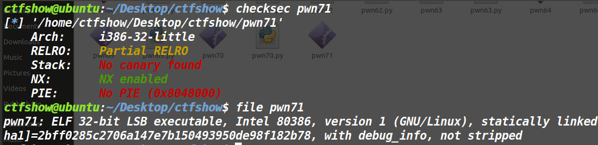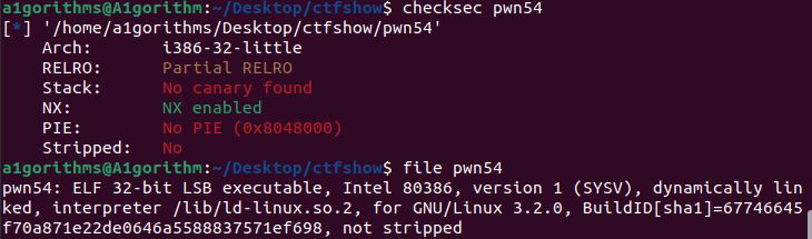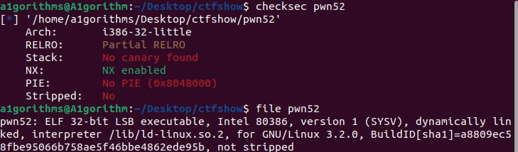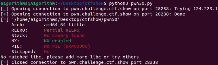 跟题目说的一样,只开了个NX保护,而且是动态,可用ret2libc