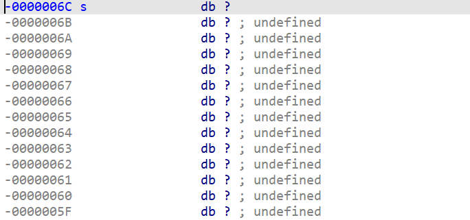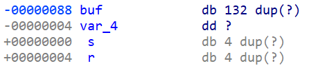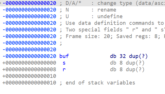 首先我们需要确定缓冲区变量溢出的时候至少能覆盖俩位置,就是意思是不能太小,小到完全没有那根本就搞不了,这边有4个位置,算是正好