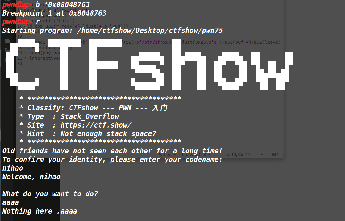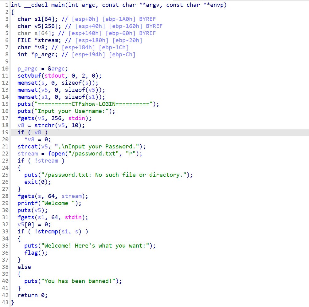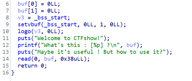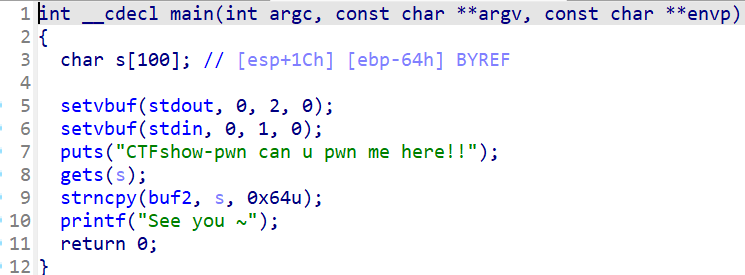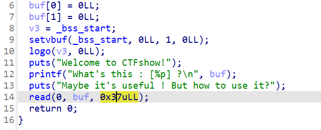 而且在主函数的ctfshow函数可以找到栈溢出的点
