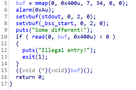 又知道这一题让我们用mprotect,既然能构造栈溢出了,那么mprotect可以给我们可写可读可执行的(7)能力,我们就能直接打shellcode了