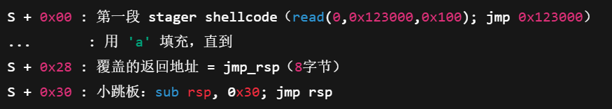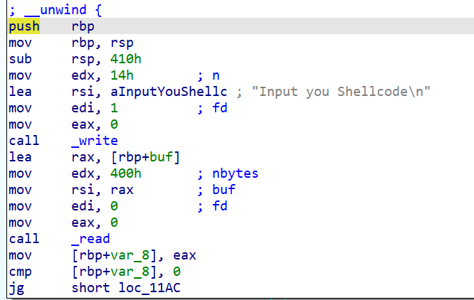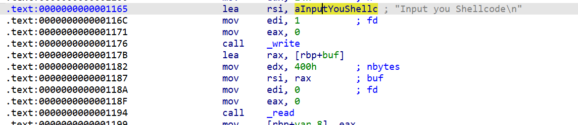 现在程序会读这个地了,我们就需要构造shellcode传进去了