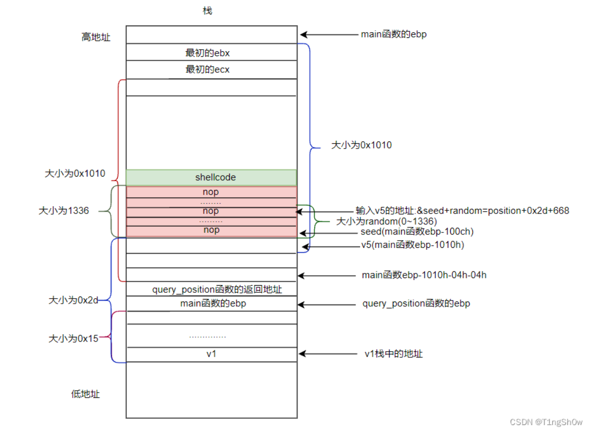 我们的劫持目标地址,即最终目的地HiJackAddr为缓冲区变量 s 的起始地址。要计算这一地址,可采取 栈上ebp + 偏移量的方法