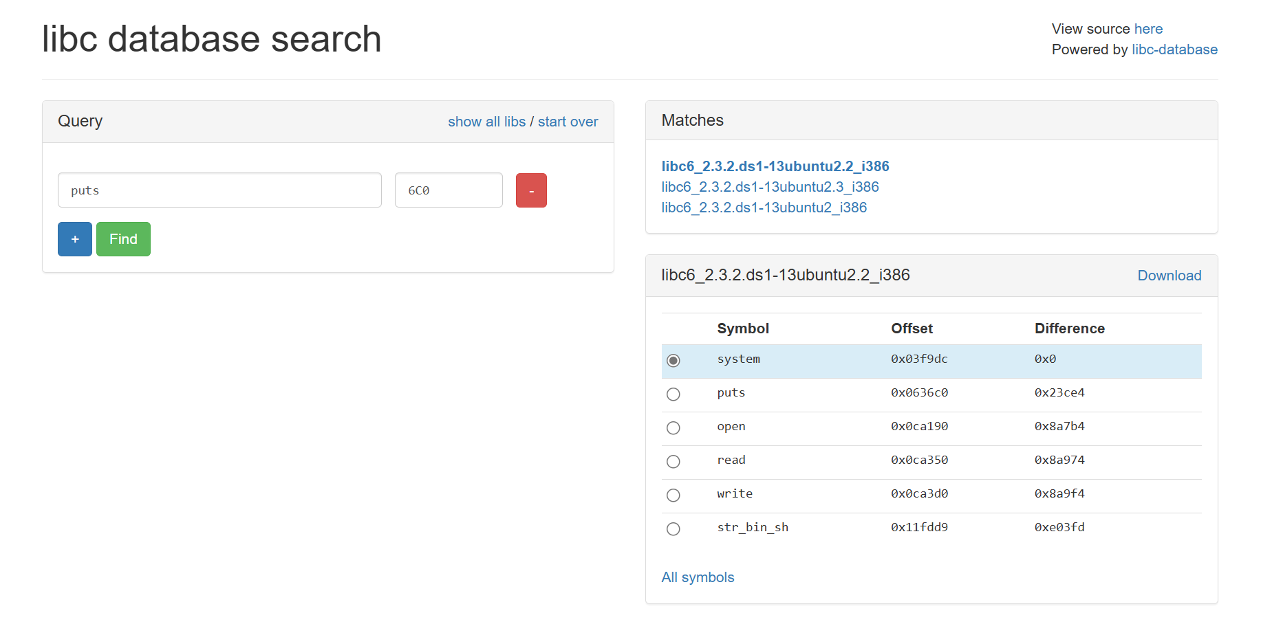 于是在截断后我们就可以利用libcsearcher库直接找到libc库了