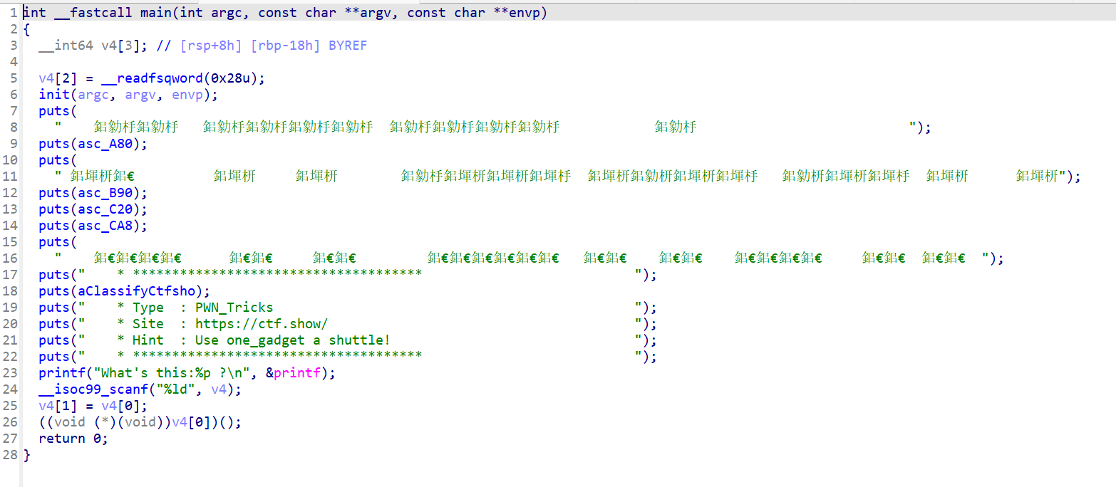 所以先截取print_addr=int(io.recvuntil(“ “),16)