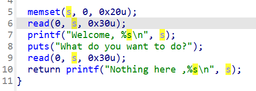 这边可以看到栈溢出的部分限制输入0x30,然而溢出需要0x28+4