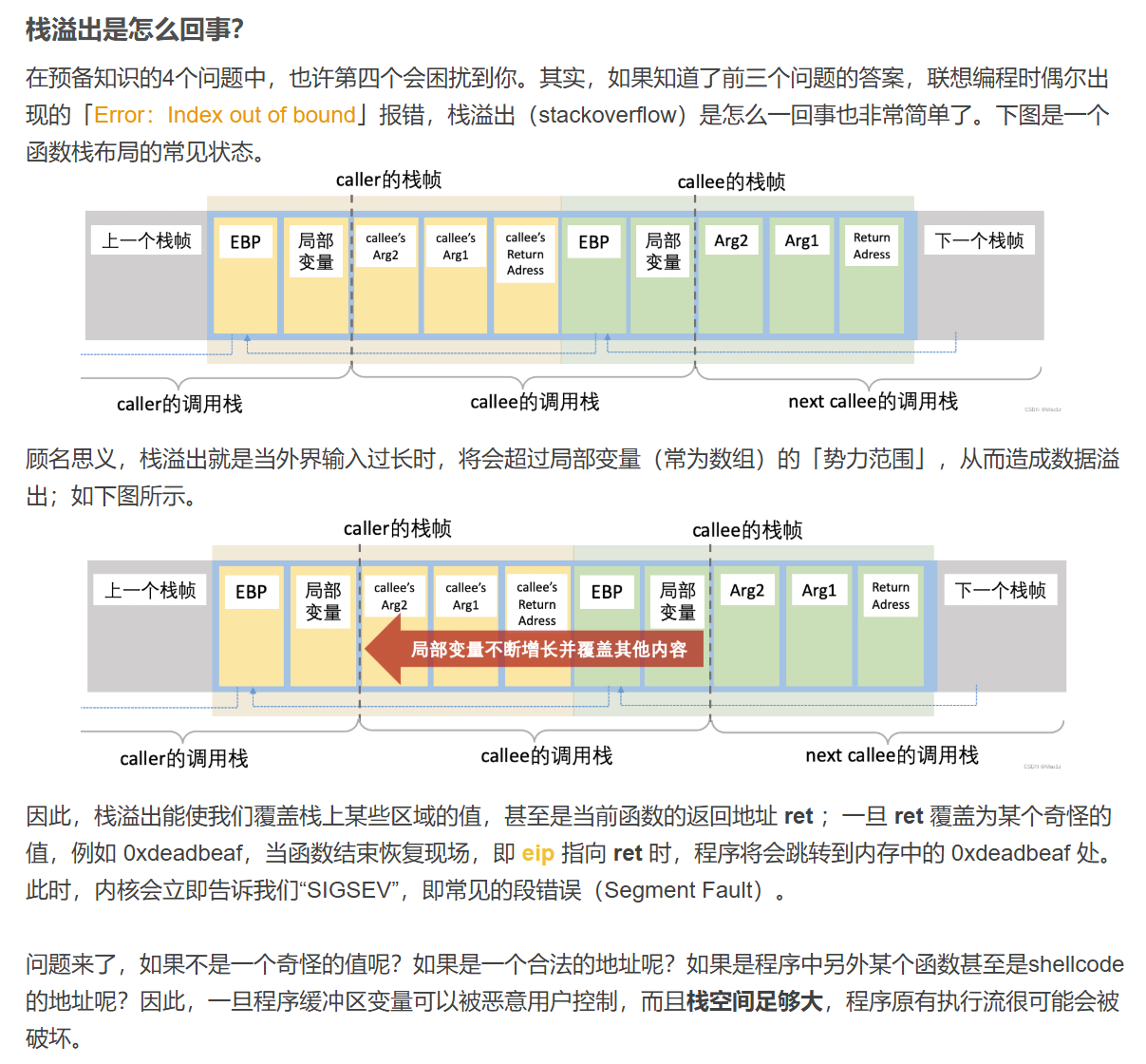 甚至为我们再次叙述了栈溢出的本质,说的确实很好