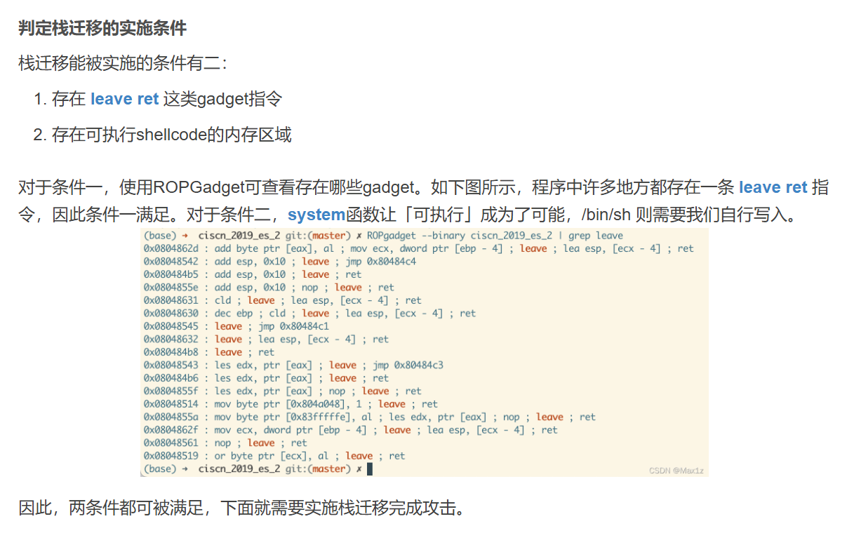 这其实是很多比赛都在考的一部分,很多比赛都故意把栈搞的很小,一部分是限制输入的shellcode长度,而另一部分我想或许就是本题涉及的知识点——栈迁移