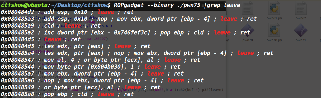 第三步找一段leave ret gadget的地址,记这个地方叫LeaveRetAddr