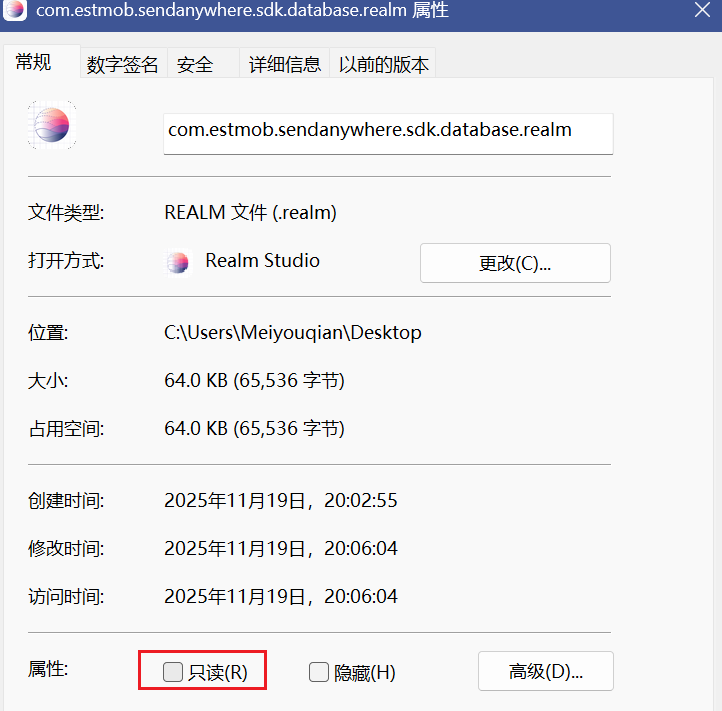 这边还有一个问题,就是必须把这个只读给去掉,否则无法打开realm studio