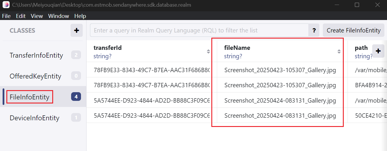 在Library文件夹下,我们能发现存在一个realm的数据库文件