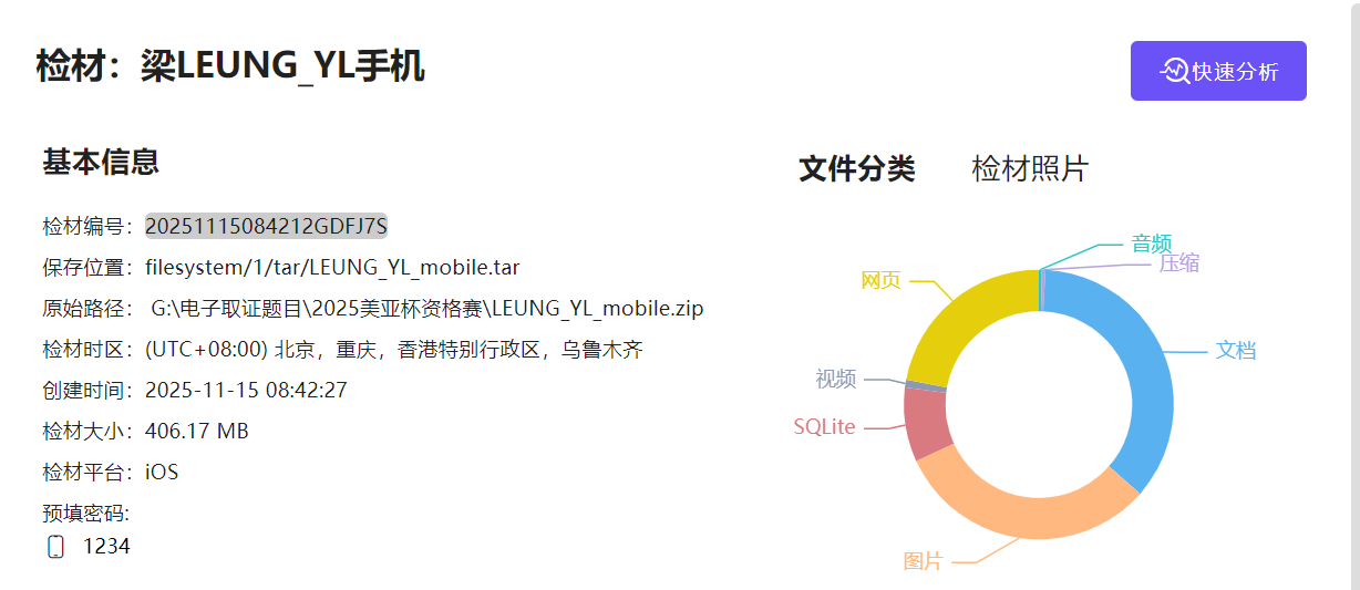 像这样子爆破出密码后填入火眼,即可一键取证了,这是最难也是最重要的一步