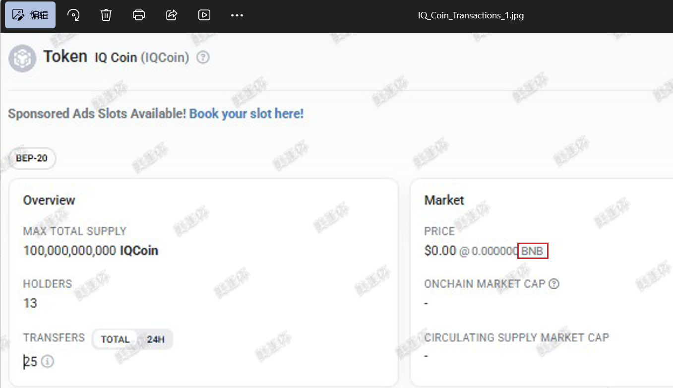 96.承上题,这项交易传送了多少BEP-20 IQ Coin?(请以阿拉伯数字依照参赛材料中的原文作答,注意区分大小写、空格及符号和不用标点符号 )