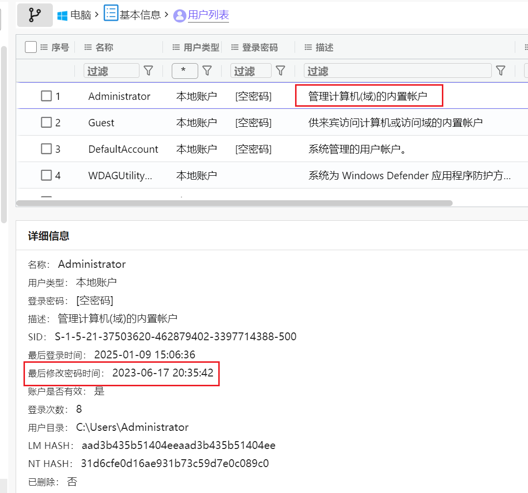8.请问计算机管理员用户的设置密码时间是什么时候。(标准格式:1970/06/17 23:25:41)(4分)
