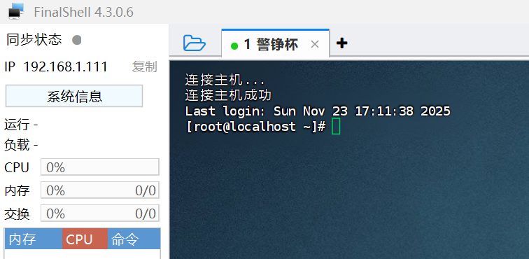这边不是很方便,其实我们刚刚开了ssh之后也可以直接在finalshell做