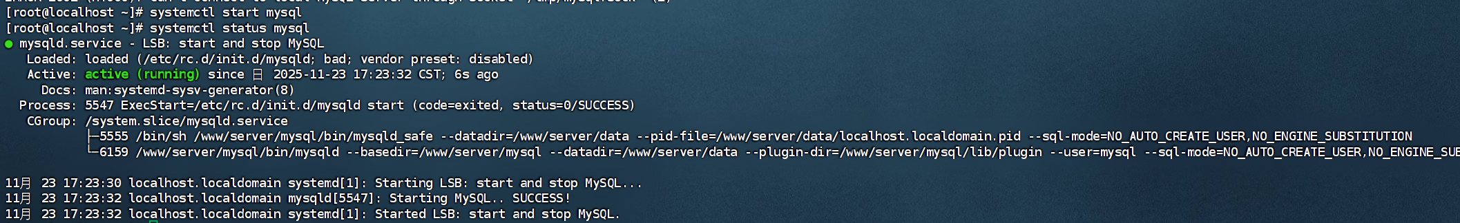 刚刚的那边我们可以看到mysql没开