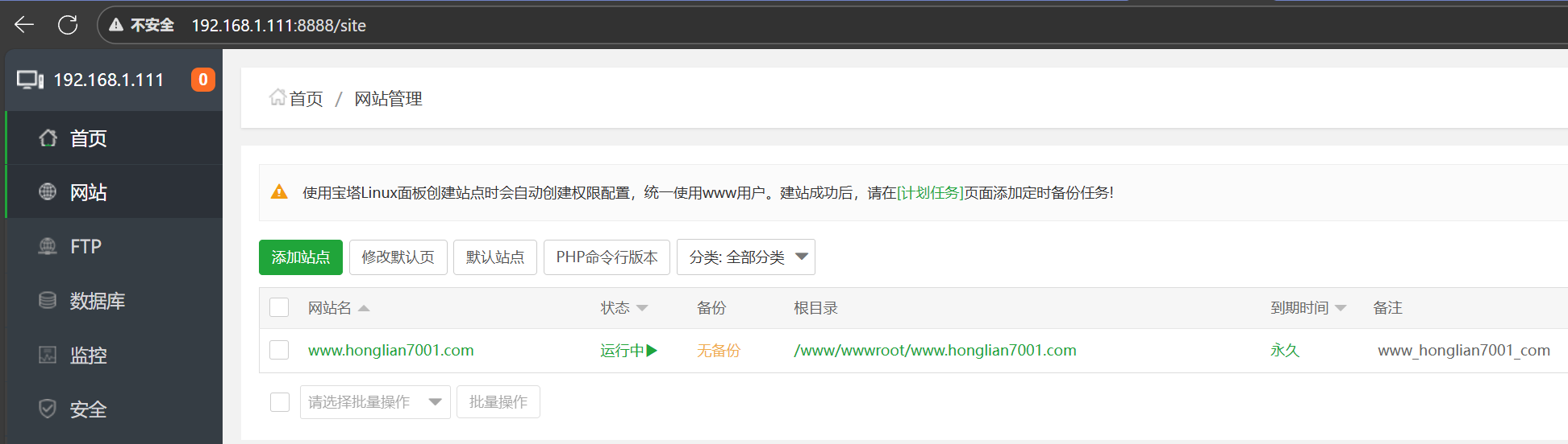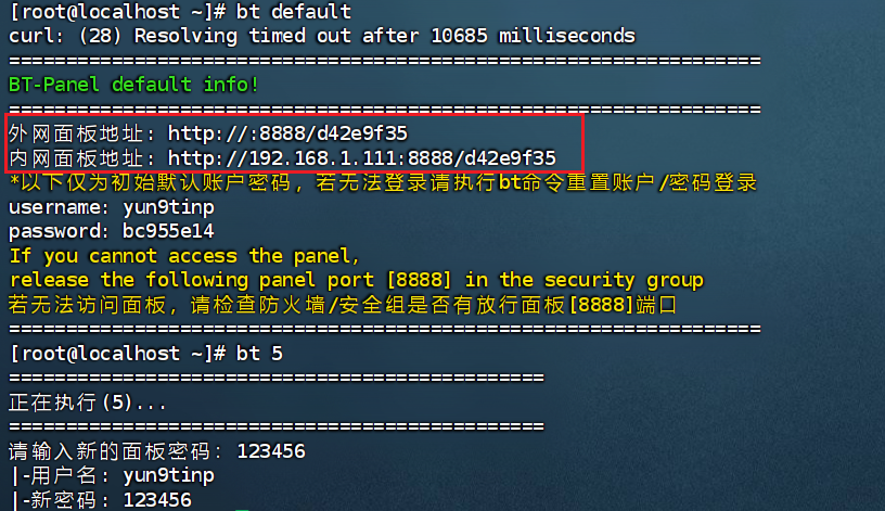 先bt default启动宝塔